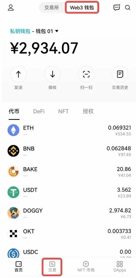 (1)进入【Web3钱包】-【交易】页面。