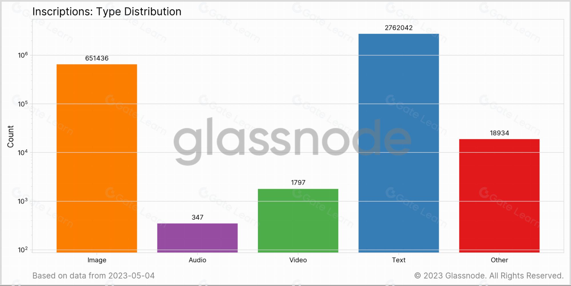 此外,文本铭文占据着主导地位,拥有超过 280 万个实例,远远超过图像、视频和音频文档等其他铭文类型,标志着区块链交易动态的关键转变。这一趋势不仅反映了比特币生态系统内不断增长的创造力,而且在网络效率和可扩展性方面提出了新的挑战和机遇。Taproot 通过提供增强的功能来处理如此多的交易类型,已被证明是及时且显着的增强,确保了网络在这些变化中的稳健性和效率。