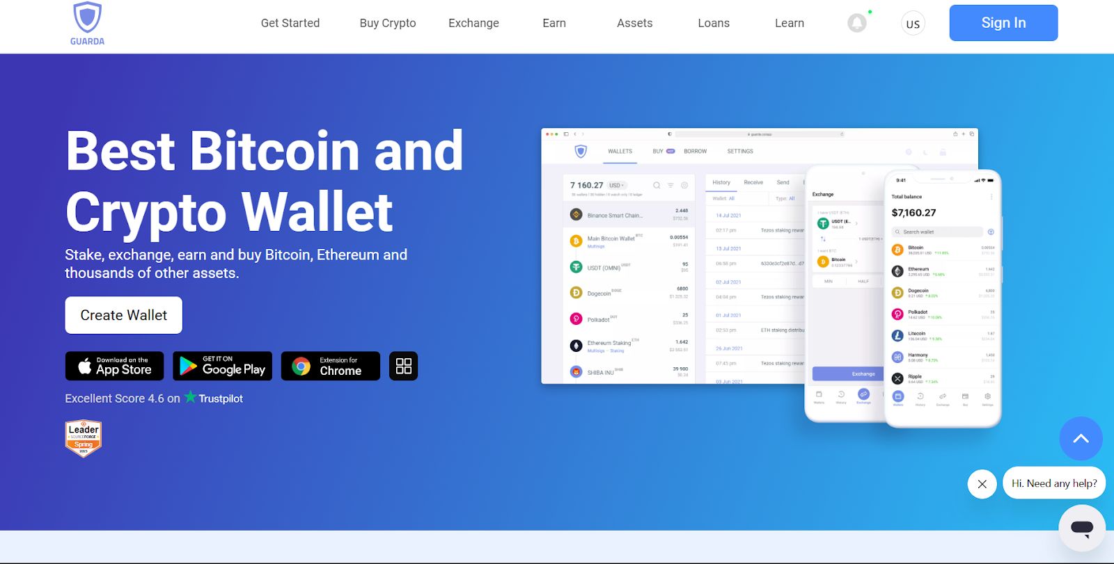 | Guarda钱包 | 自由的 | 超过 40 万个资产,分布在 70 多个区块链上 | 希望使用内置交易功能的多平台用户 | 4.4/5 |