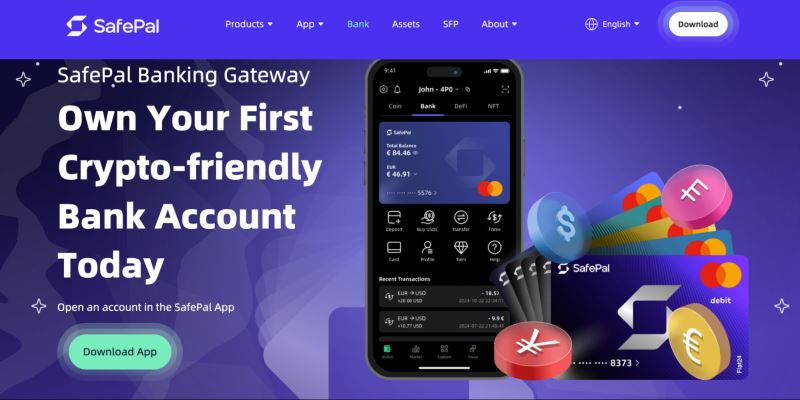 SafePal提供完整银行账户(含IBAN),通过Fiat24支持国际收款、出金及借记卡消费。支持Apple Pay、Google Pay、支付宝、微信支付,结算货币包括欧元、美元、瑞士法郎和人民币。手续费约1%~3%,同币种消费免额外收费,账户用完法币时可自动从加密资产扣费。适合跨境收支需求的用户。