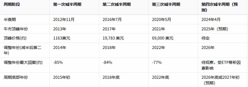 根据历史四年减半周期的模式,减半后的第二年(2026年即是如此)通常是市场的主要调整期。因此,经历一个熊市或长期的盘整是大概率事件。然而,其深度是否会达到2022年的水平(超过75%的回撤),取决于多种因素。如果2026年全球宏观经济环境恶劣,例如央行持续紧缩或爆发系统性金融危机,那么深度熊市的可能性会增加。反之,如果宏观环境相对温和,加上比特币现货ETF带来的持续机构买盘,调整可能会以一个较浅的回撤(例如30%-50%)和更长时间的底部盘整形式出现。