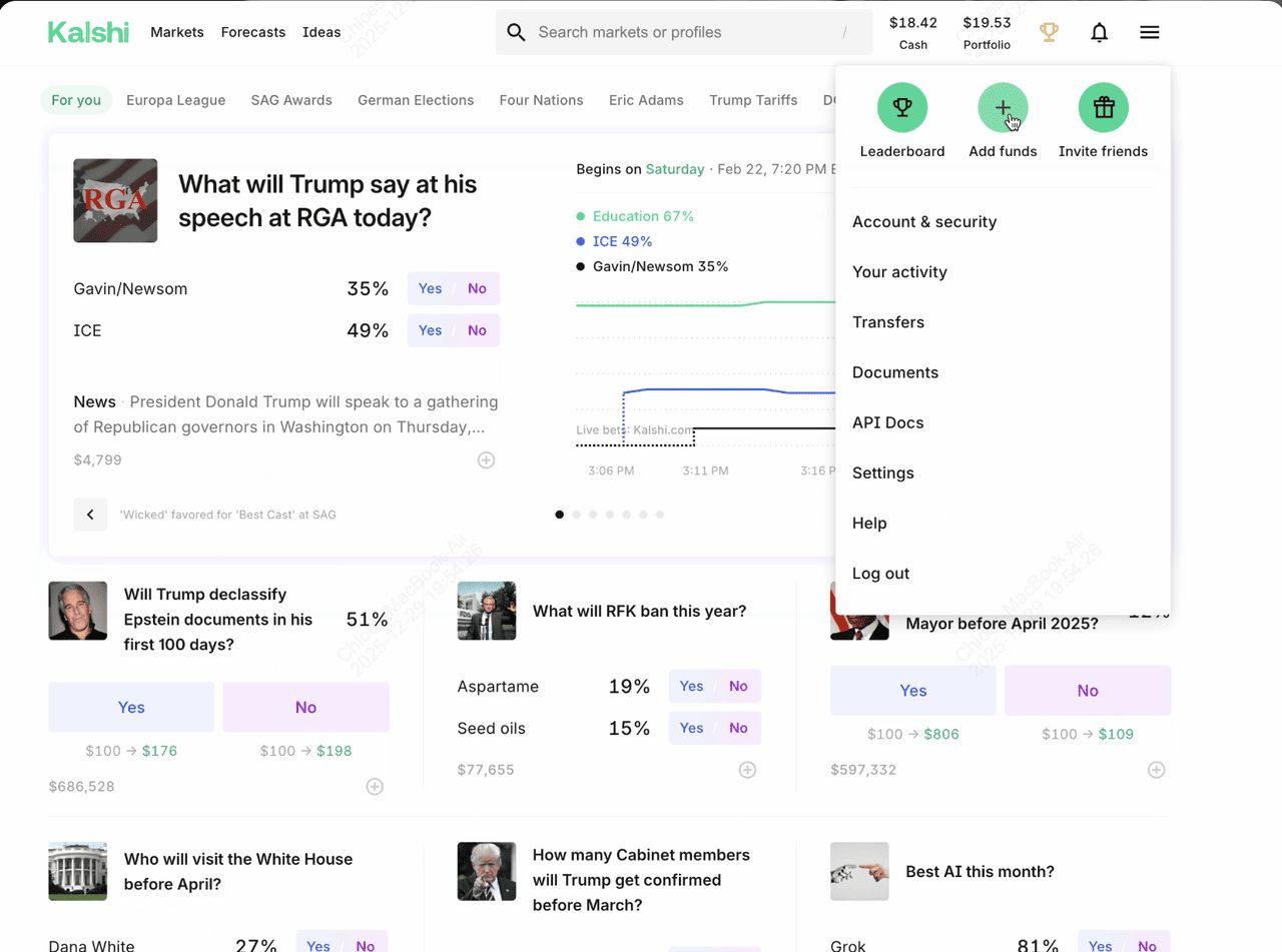 Kalshi 让参与受监管的事件预测变得简单。您可以在政治、经济、体育、娱乐、金融等领域的精选市场上进行交易,新用户通常有资格获得奖金,例如首次交易后可获得 10 美元。要开始交易,您需要一个经过验证的帐户,并通过银行转帐、借记卡或电汇存入法币资金。无需加密货币,尽管现金余额会产生利息。