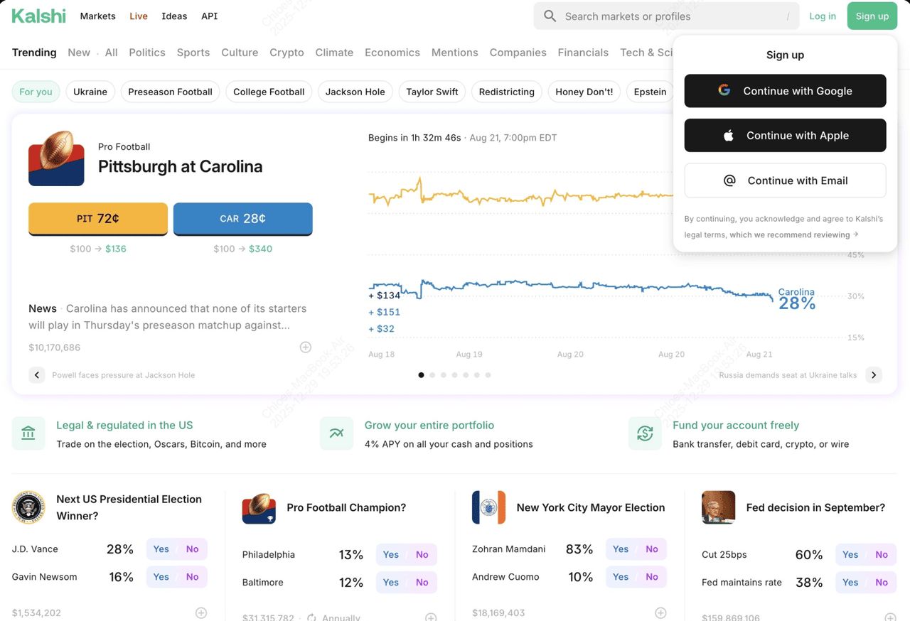 Kalshi 是美国领先的受监管预测市场之一,已占据显着市场份额,周交易量达到 23 亿美元,并在 10 亿美元的融资后估值达到 110 亿美元,使其可用于对冲风险或投机从联准会利率到奥斯卡奖得主的一切。