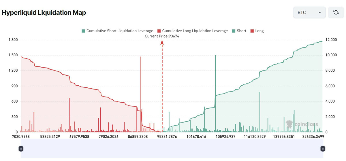 Hyperliquid上的BTC清算图。来源:CoinGlass