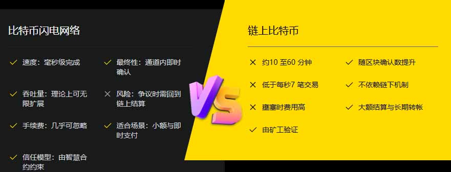 闪电网络更适合快速的小额支付,而链上比特币更适合大额结算和长期安全存储。