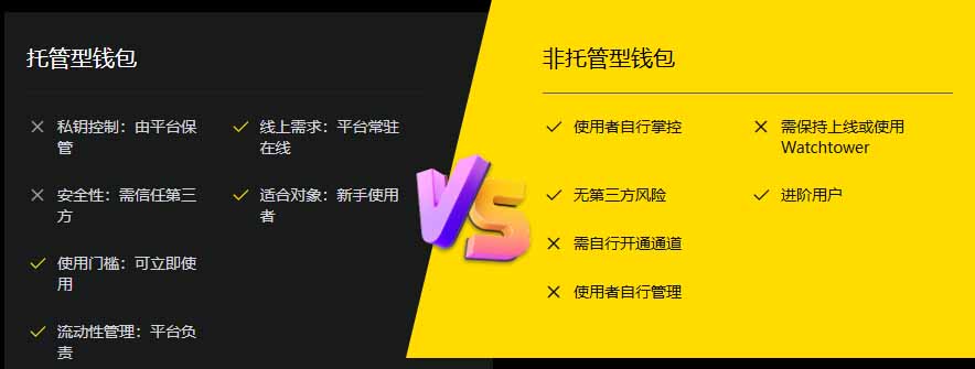 托管钱包(Custodial Wallets)类似于银行存管模式。 服务商代为管理私钥及信道流动性,用户需信任其资金安全。此类钱包大幅降低了使用门槛,新用户无需理解复杂的信道管理即可立即进行交易,体验最为便捷。