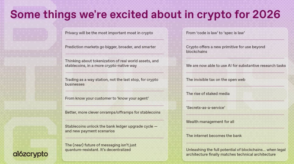 a16z crypto 大理念报告2026是一份针对未来几年区块链和加密货币领域的观察与预测的报告。