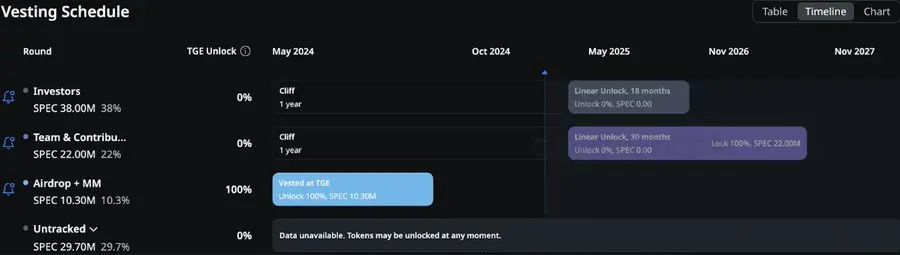- 由于在2025年中期之前没有解锁事件,$SPEC代币受益于减少的抛售压力,这可能支持价格稳定和增长,特别是在市场条件持续有利的情况下。