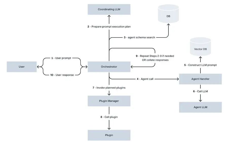 以下是Spectral Syntax网络的一般架构概述,其中包括一个协调器来管理通信、钱包处理和插件集成。从提示提交到代理动作的每个阶段都通过这个结构,允许代理基于实时数据执行任务。