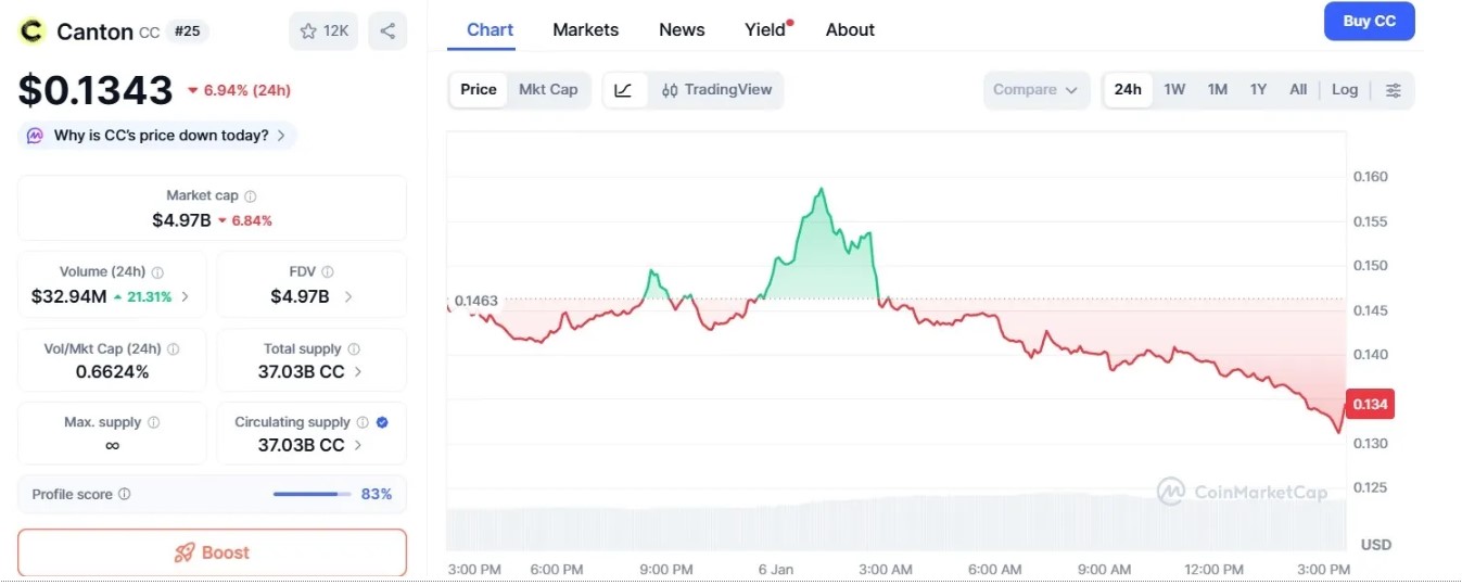 Canton (CC) 是什么?Canton代币经济学与价格分析