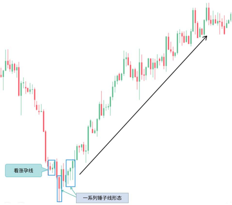 孕线类似于西方内部日技术分析形态。它看起来像一个反向吞没形态。