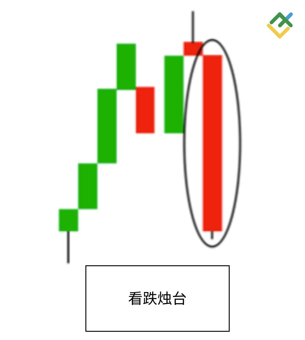 看跌烛台通常是黑色(或红色烛台),意味着价格下跌。该烛台显示开盘价和收盘价。