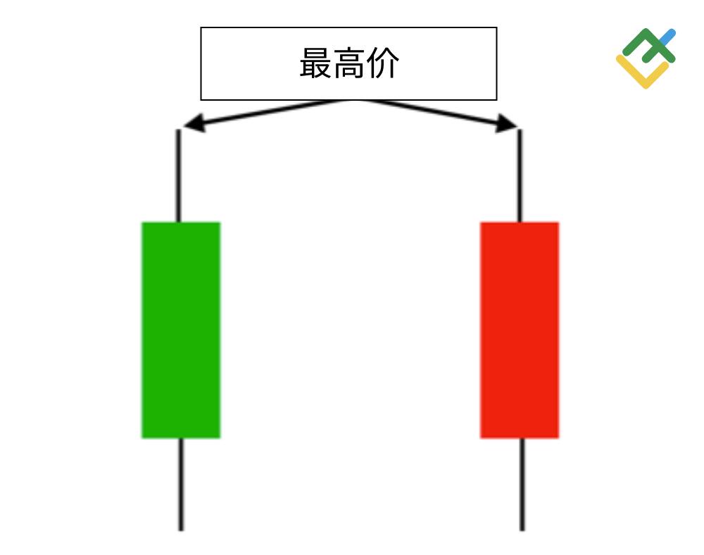 最高价是一段时间内价格达到的最高水平。使用烛台影线来标记它。如果没有影线,则开盘价或收盘价为该时间段内的最高价。