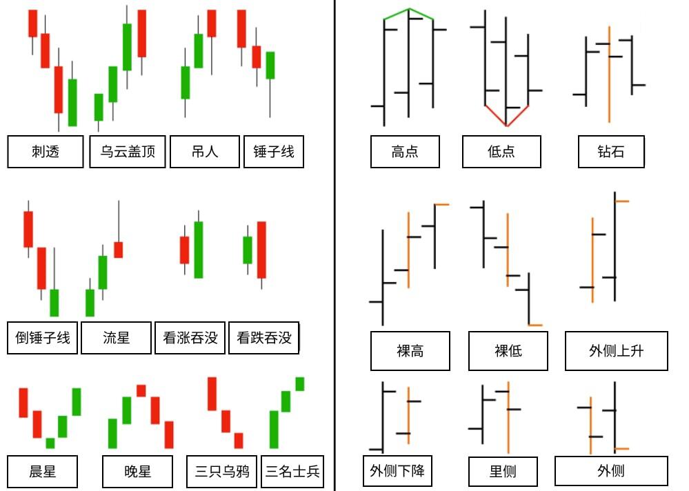 条形图和烛台图之间的区别在于分类和术语不同,因为条形图是由西方国家技术人士开发和使用的。