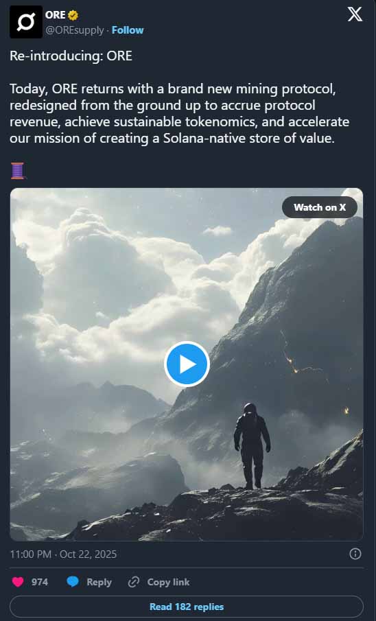 这项合作使 Coal 成为第一个使用 ORE 作为国库资产的协议。这种关系可能会创造出独立于挖矿机制本身之外的持续 ORE 买压。其成功完全取决于 $COAL 是否获得采用与使用。如果熔炼活动保持低迷,该合作产生的影响将微乎其微。如果熔炼成为 Solana 生态系统中的内核活动,对 ORE 供应的影响可能会相当可观。