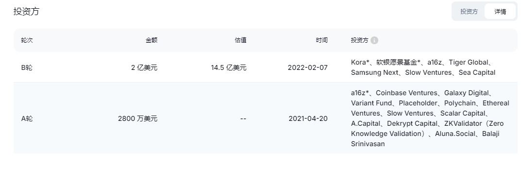 • B 轮融资:2 亿美元,由 Kora Management LP 和 SoftBank Vision Fund 2 牵头,Tiger Global 和 Sea Capital、三星 Next、Slow Ventures 和 Andreessen Horowitz(a16z)参投;