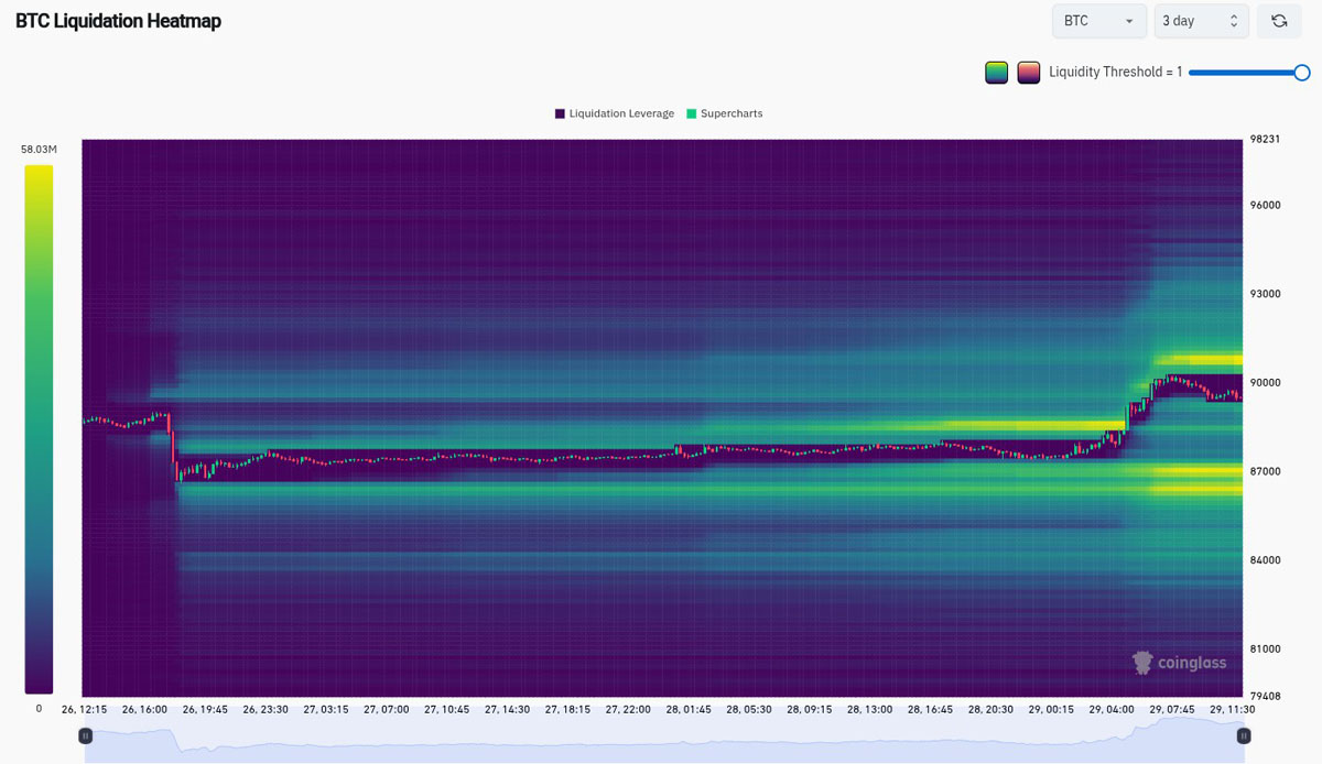 来自监控资源CoinGlass的数据显示,过去三天内,现货价格附近的流动性正在增强,以迎接今年最后几个传统金融交易日。