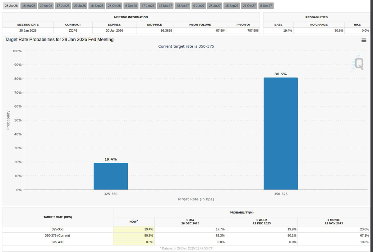 美联储1月FOMC会议的目标利率概率(截图)。来源:芝加哥商品交易所集团