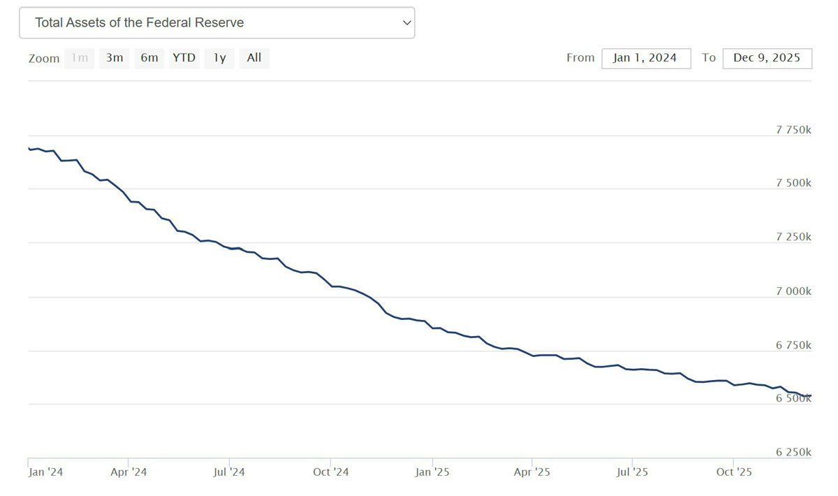 宏观条件依然举足轻重。2025年,美国实际收益率平均介于1.6%至2.1%之间,而美联储资产负债表进一步收缩