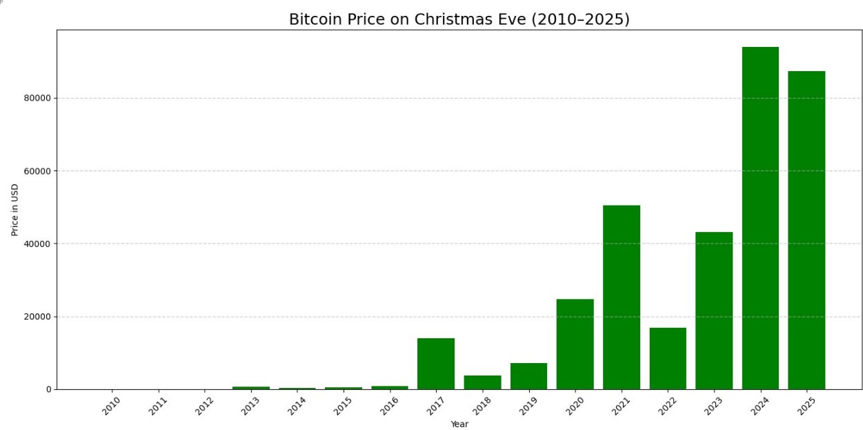 随着2025年圣诞节的到来,比特币再次成为市场投机的焦点。在圣诞前夕,BTC 的交易价格约为90,000 美元,仍然低于备受期待的100,000 美元心理门槛。