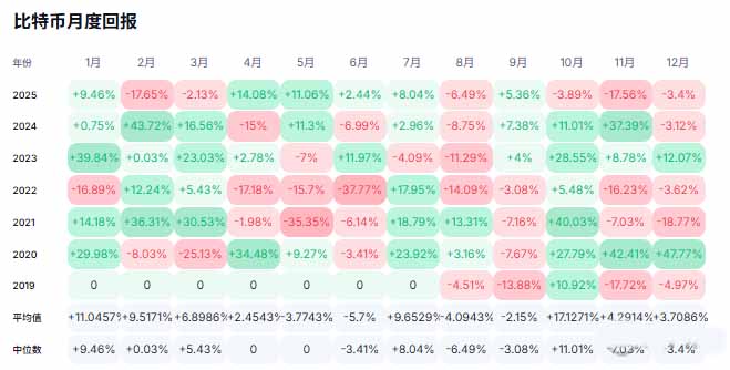 比特币月度回报率,来源币界网