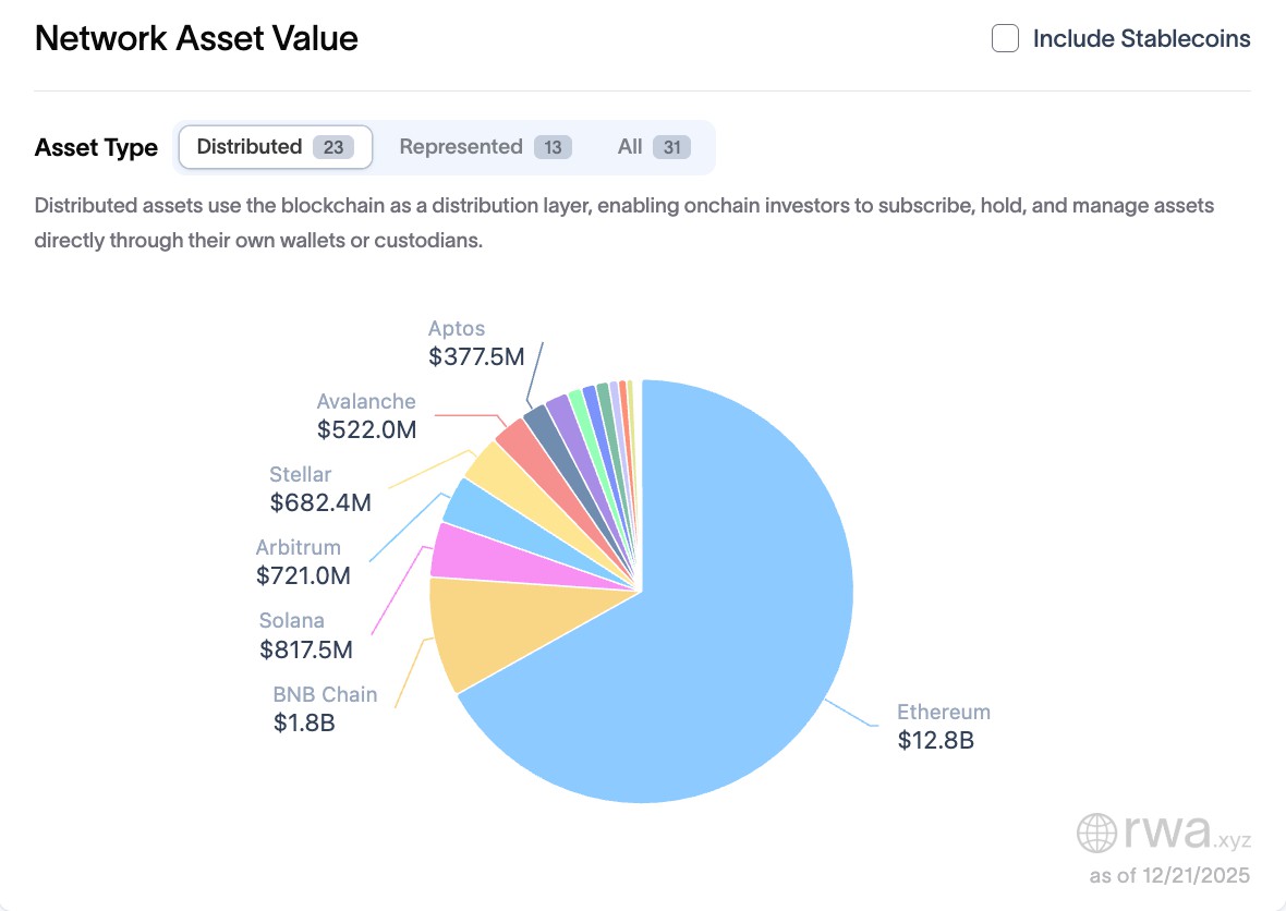 绝大多数代币化的RWA价值都在以太坊网络上找到了自己的家。来源:风险权重。XYZ