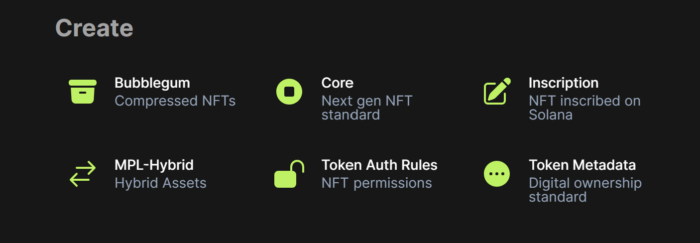 Metaplex 的这一系列工具为创作者提供了在 Solana 上管理和扩展数字资产的能力,提供创新工具用于 NFT 的创建、定制以及去中心化生态系统中的安全数据管理。