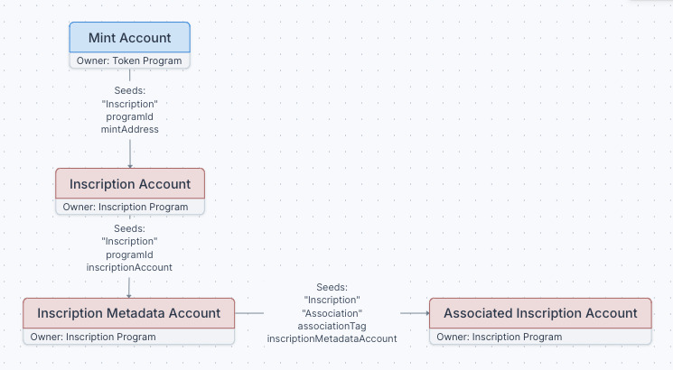 Inscription 进程提供了将 NFT 数据直接存储在 Solana 区块链上的选项,而不再仅依赖像 IPFS 或 Arweave 这样的链外存储解决方案。通过 Inscription,开发者可以将数据铭刻到区块链上,并将其与 NFT 关联,从而实现数据的永久性存储和便捷访问。这对于需要可更新链上元数据的项目,尤其是游戏或动态艺术应用非常有价值。开发者可以通过进程衍生地址(PDA)将额外数据与代币关联,从而支持更广泛的链上功能,包括实时数据更新和独特游戏物品跟踪。