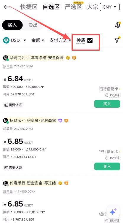 - 第三步:筛选币种与优质商家