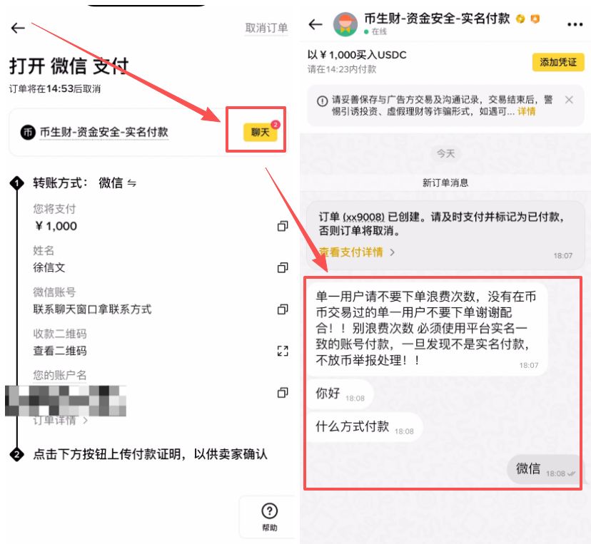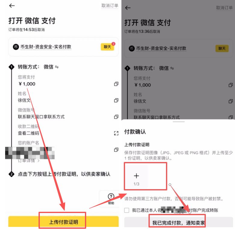 2、离线转账:离开币安 App,去微信/支付宝/银行App 给商家转账。注意:转账完成后务必截图保存凭证。
