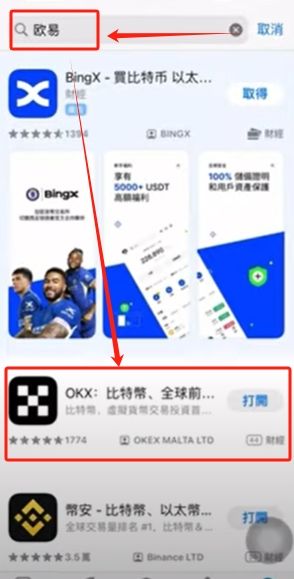 换登完成之后搜索“欧易”,找到第二个进行下载。