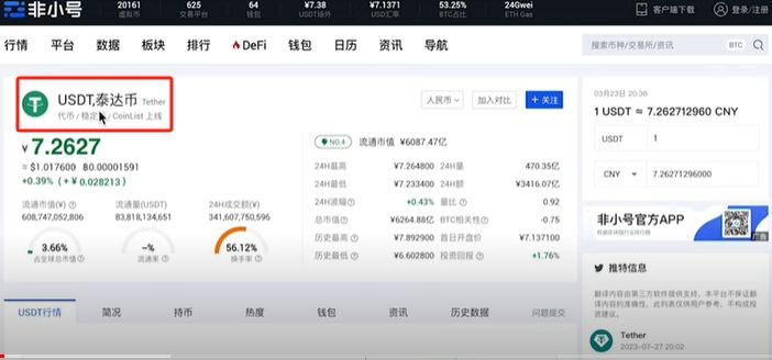 现在大家主要用的是稳定币。其中用的最多的是USDT,也叫做泰达币。USDT跟美元是1:1挂钩的。你可以理解为它就是数字货币里面的美元,购买其他的数字货币要通过USDT。