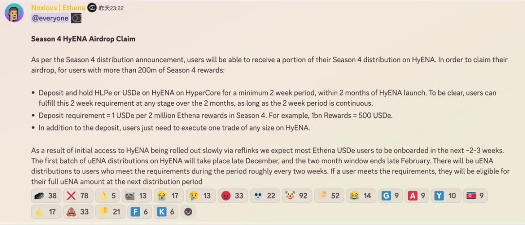 - 7. Ethena 更新了 Season 4 空投,增加了 HyENA 相关的部分