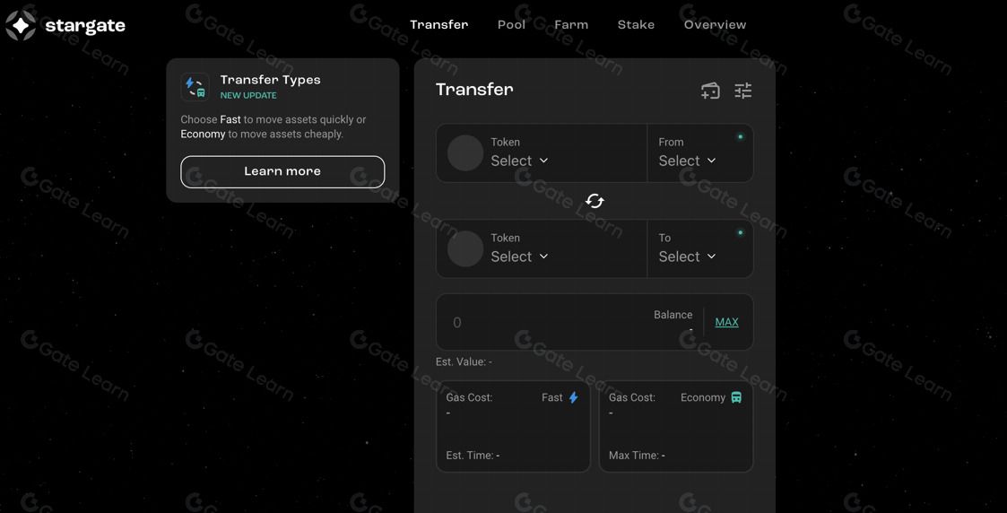 Stargate Finance支持以太坊、Polygon、BSC、Arbitrum、Optimism、Avalanche等网络,其UI体验与其他跨链桥协议差不多,较为简洁。