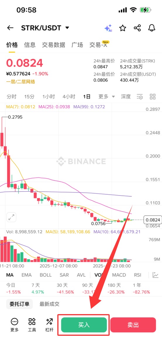 下面以币安为例,为大家演示STRK币购买步骤教程。
