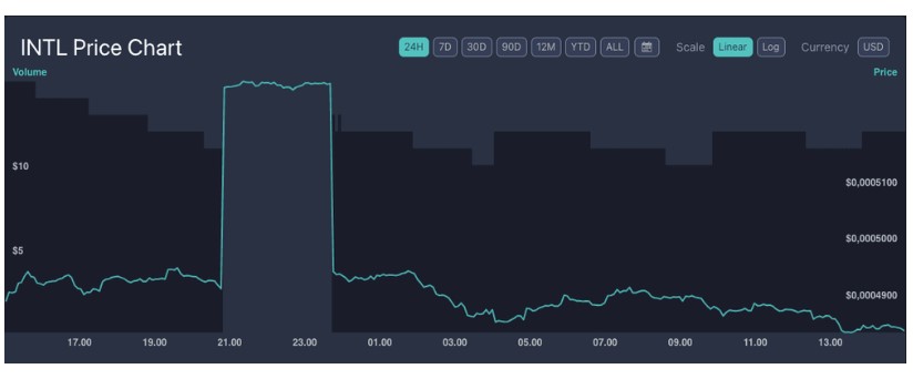 尽管流动性极低,但INTL显示出稳定的百分比增长,这在早期开发阶段的微型市值代币中是常见的。