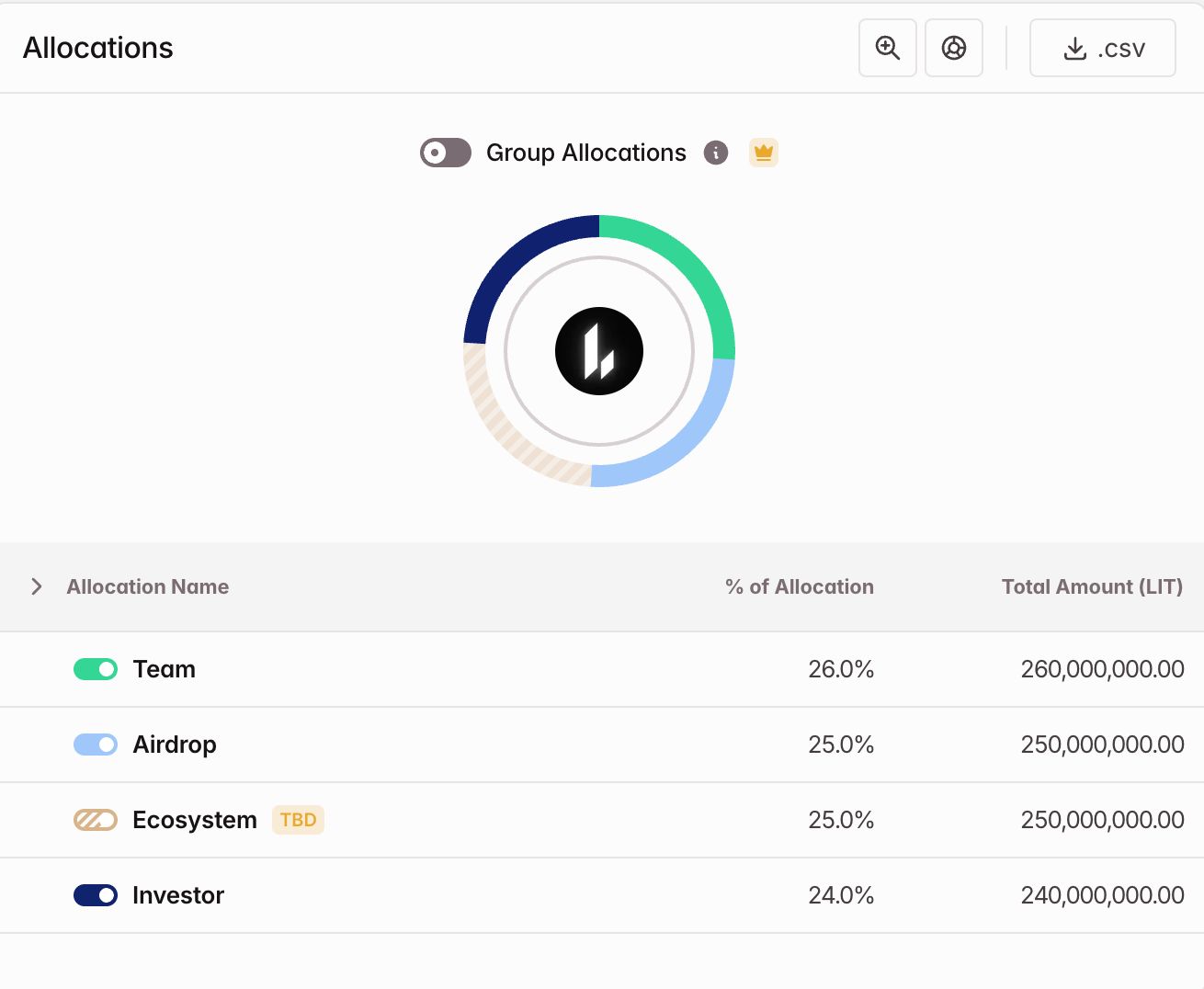 根据官方分配数据,Lighter 的总供应量上限为 10 亿枚 LIT(10 亿个代币)。其分配架构在内部利益相关者和外部社区之间实现了精确的 50/50 平衡。