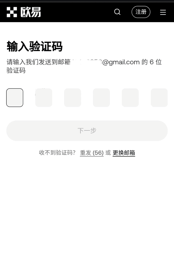 4.打开你的邮箱,找到OKX发来的邮件,把验证码复制填回注册页面,然后点“下一步”继续。