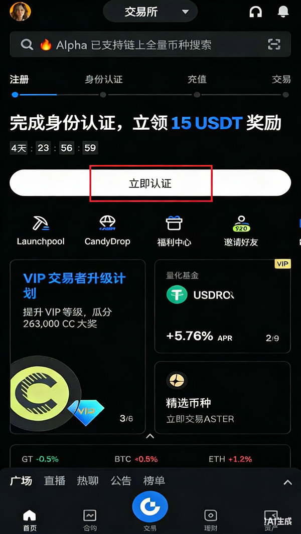 • ✅ 解锁更多Gate功能 —— 比如C2C交易(场外法币交易)、理财产品、杠杆交易等,没实名认证会有诸多限制。