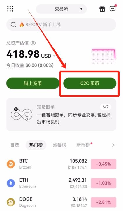 这里可以看到有快捷交易、C2C还有大宗交易。